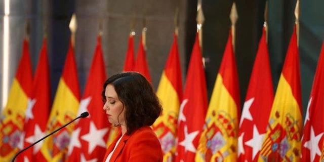 La presidenta de la Comunidad de Madrid, Isabel Díaz Ayuso, en la rueda de prensa con Pedro Sánchez.